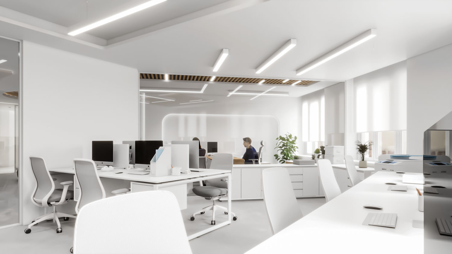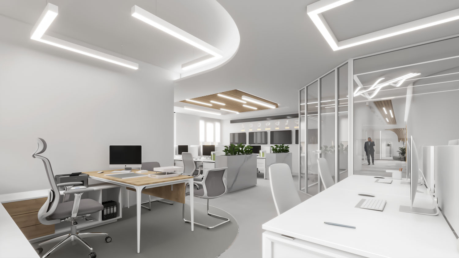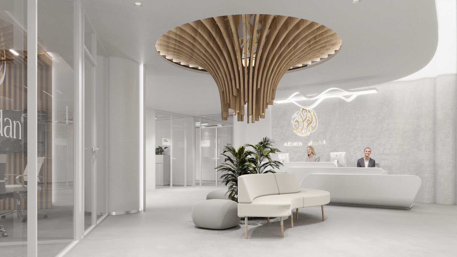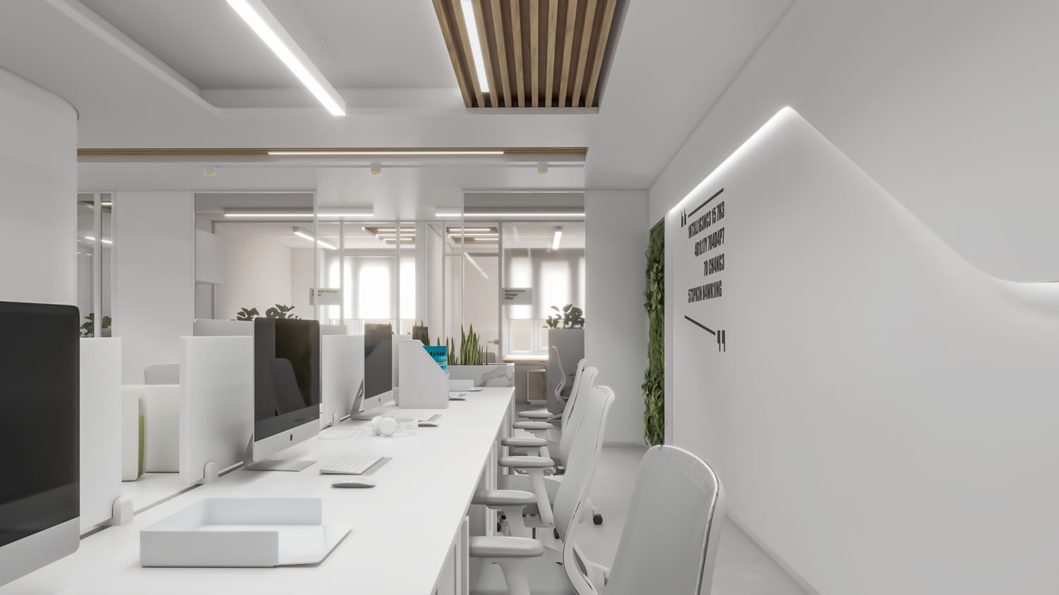 This project reflects a forward-thinking approach to financial service environments — merging minimalism with modern elegance. Designed exclusively by our team, the space offers a seamless blend of functionality and sophistication, featuring a bright neutral palette, refined architectural forms, and curated material accents. From the statement reception desk to the streamlined workspaces and private offices, every element was conceived to support clarity, efficiency, and brand presence. The layout ensures optimal flow for both clients and staff, while thoughtful design details such as acoustic ceilings, custom partitions, and indoor greenery elevate the overall experience.