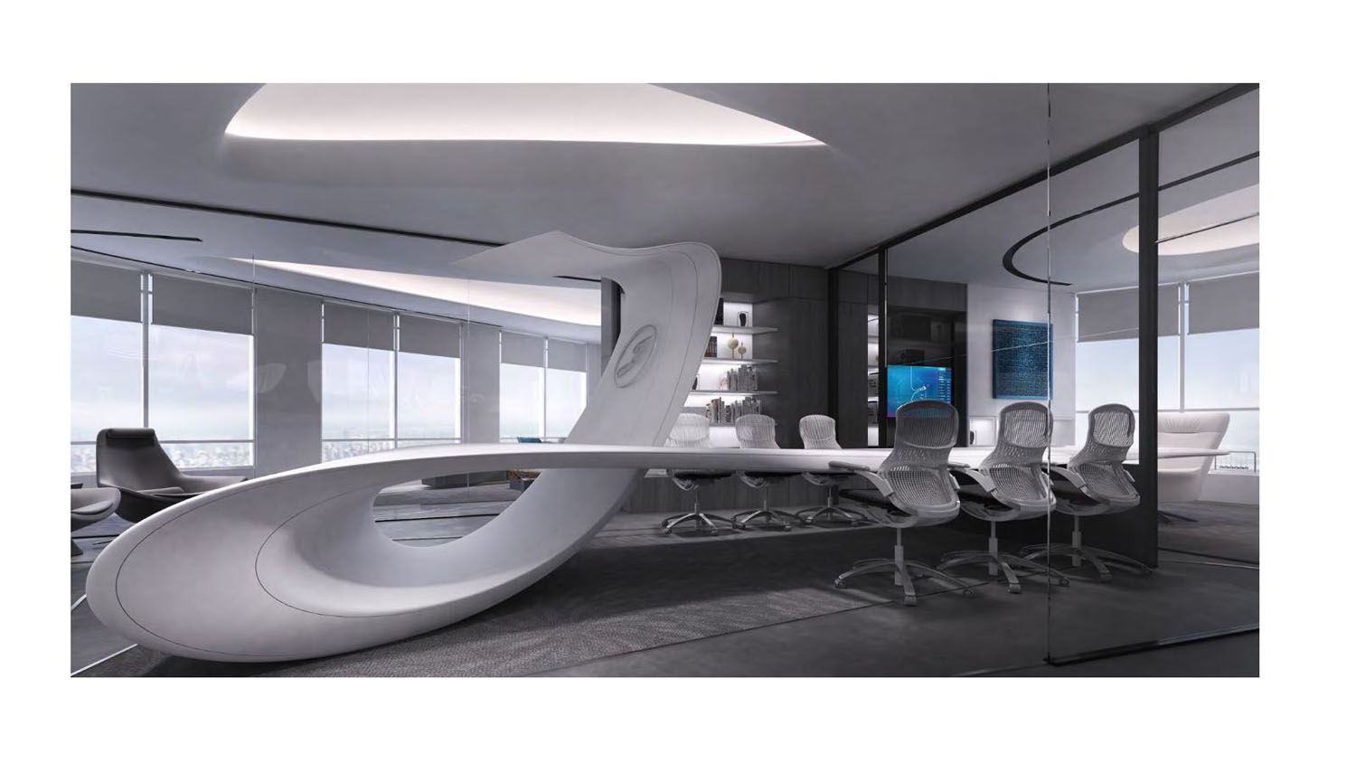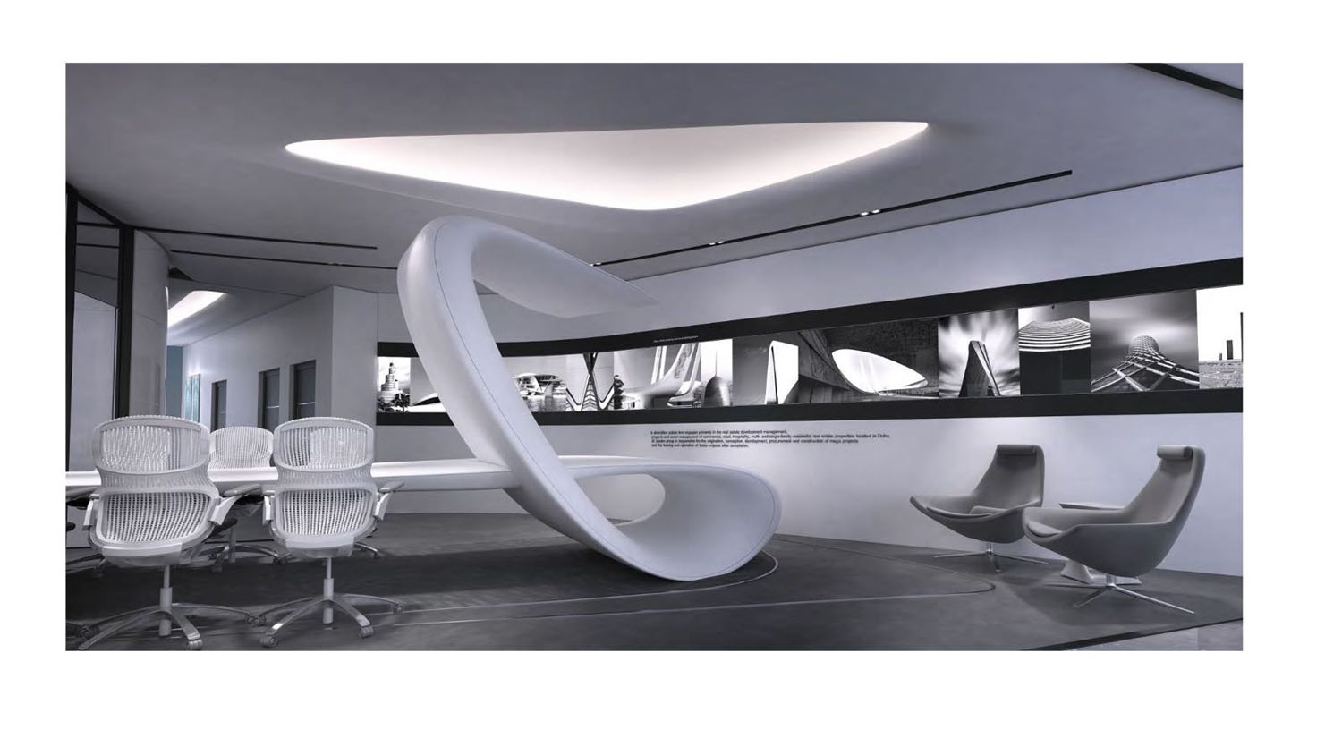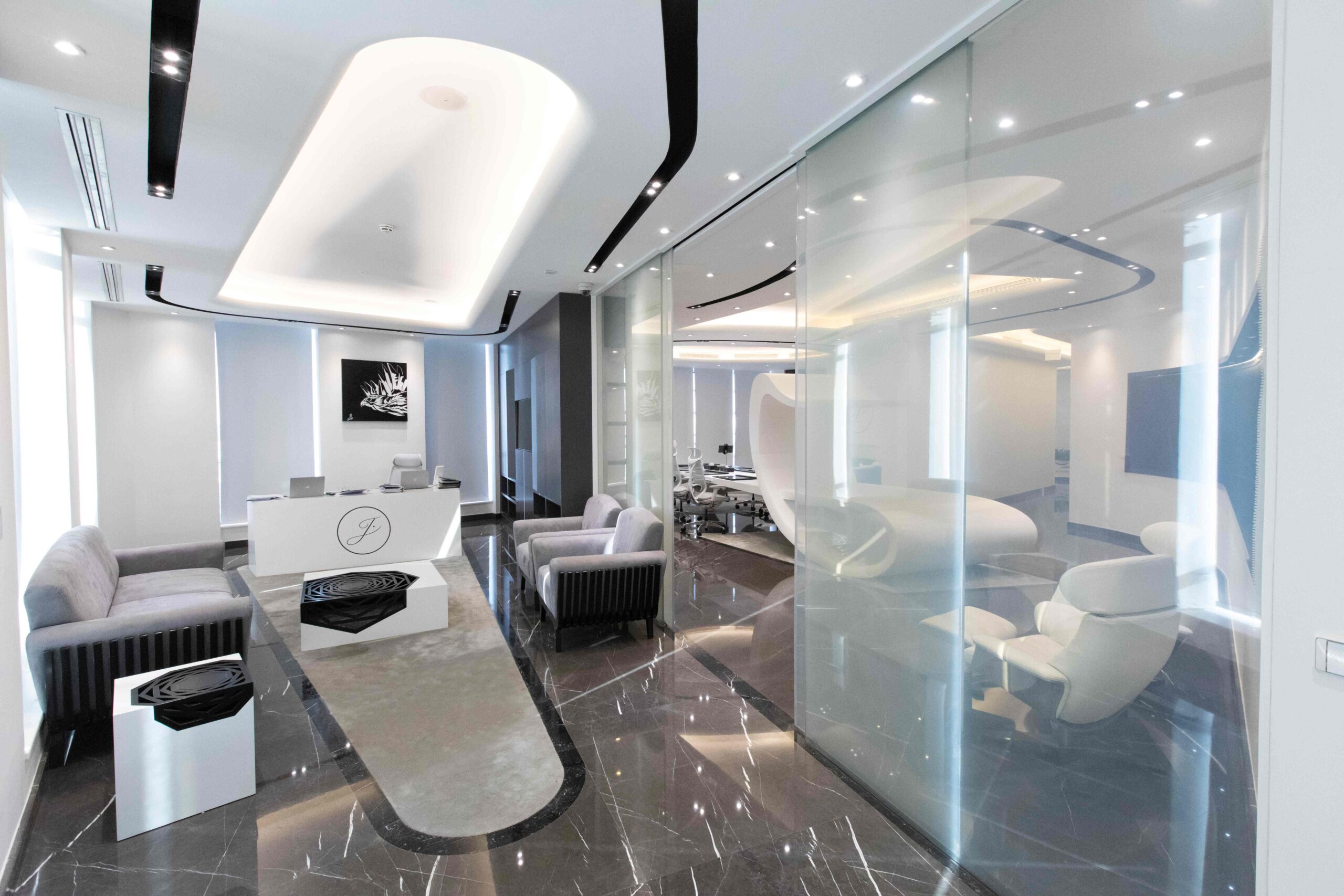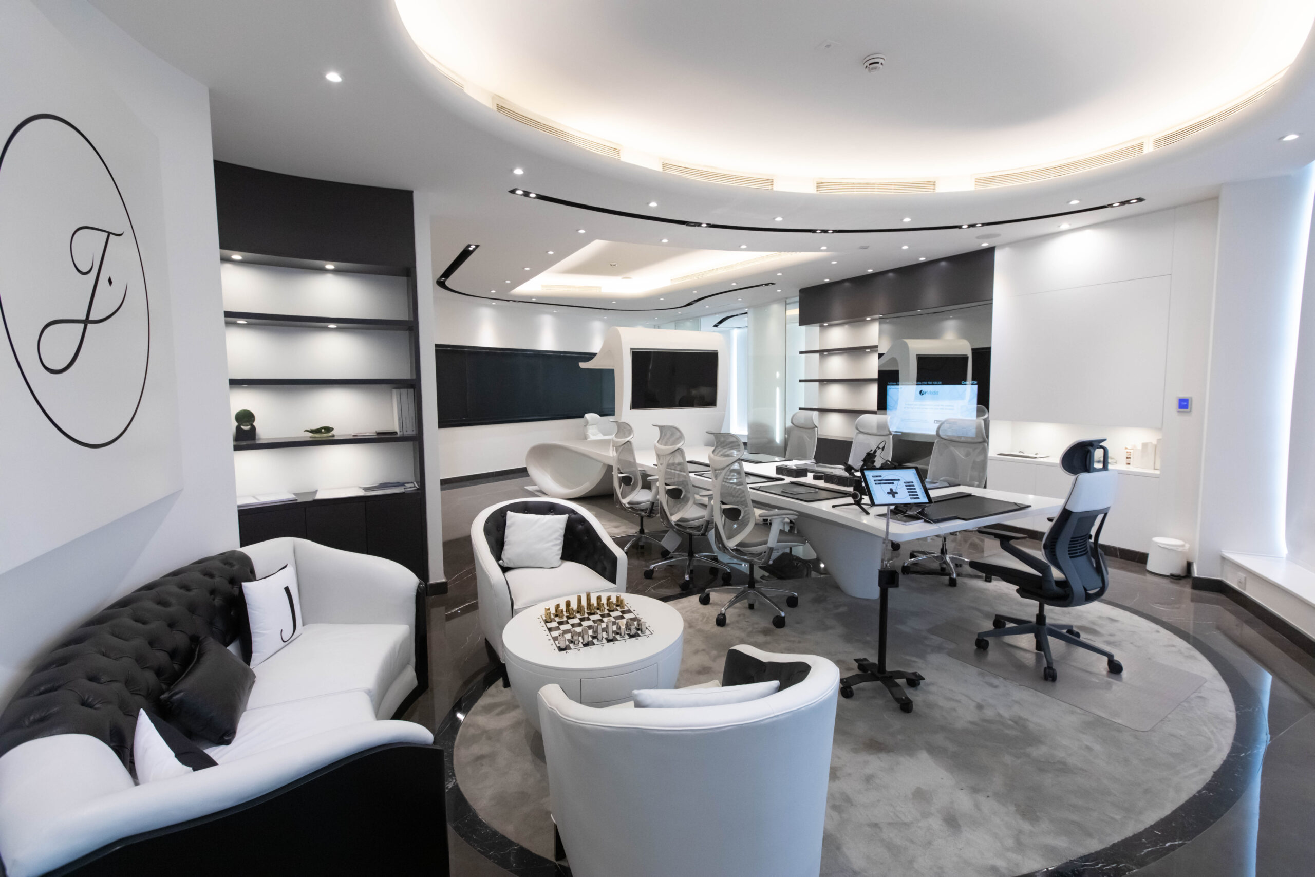 This executive office was meticulously executed by our team, with a full fit-out scope and bespoke furniture production. The space reflects a sleek, futuristic aesthetic defined by sculptural forms, high-gloss finishes, and fluid lines. A key feature is the customized meeting table — exclusively designed with the client’s initial “J” subtly integrated into its structure — merging branding with form and function. Select lounge pieces and furnishings were also tailored to complement the monochrome palette and architectural language. Every detail was curated to support a high-level executive experience, combining comfort, sophistication, and innovation.